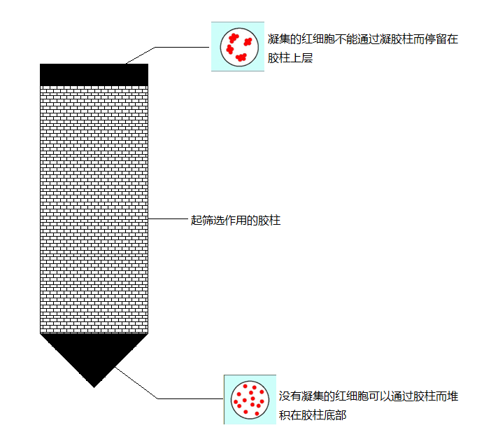 微柱凝膠技術(shù)是液相技術(shù)與固相技術(shù)的巧妙組合,是凝膠過濾技術(shù)、離心技術(shù)、紅細胞凝集試驗技術(shù)(特異性抗體抗原反應(yīng))的完美結(jié)合。通過對凝膠種類的選擇和凝 膠濃度的調(diào)節(jié)來控制分子篩孔徑大小,使分子篩只允許游離紅細胞通過,從而達到分辯凝集紅細胞和非凝集紅細胞的目的。