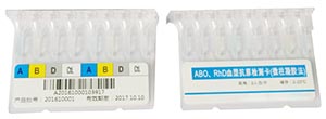 血型檢測卡用于快速檢測新鮮血液的ABO血型。在每一個檢測孔內(nèi)滴加一至二滴待測紅細胞懸液(濃度不低于2%),混合作用30秒鐘后,上下傾斜試劑卡或用牙簽攪勻,不要讓液體流出孔外,1分鐘內(nèi)觀察結(jié)果。有砂粒狀凝結(jié)物的為陽性,沒有凝結(jié)物的為陰性。